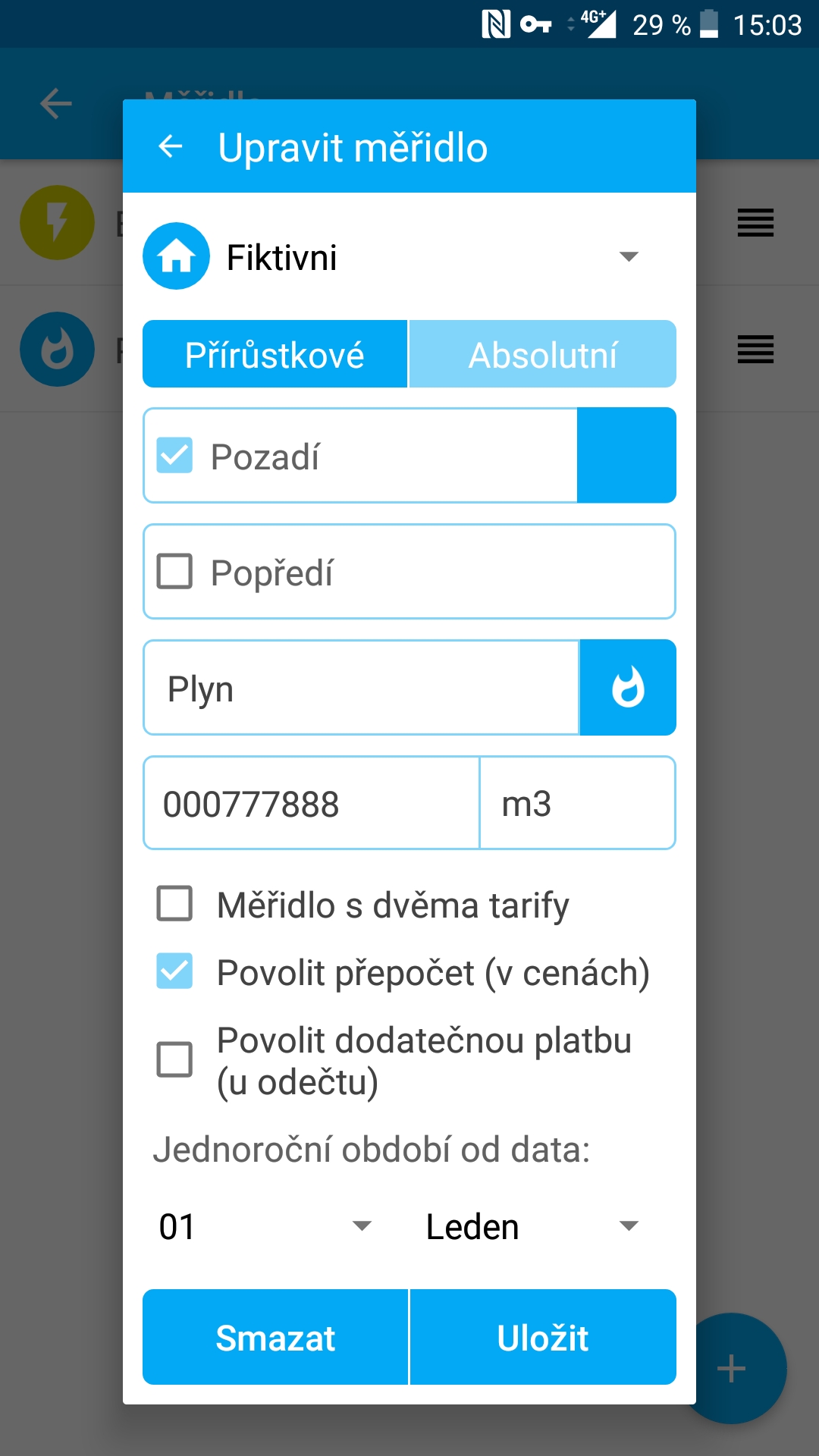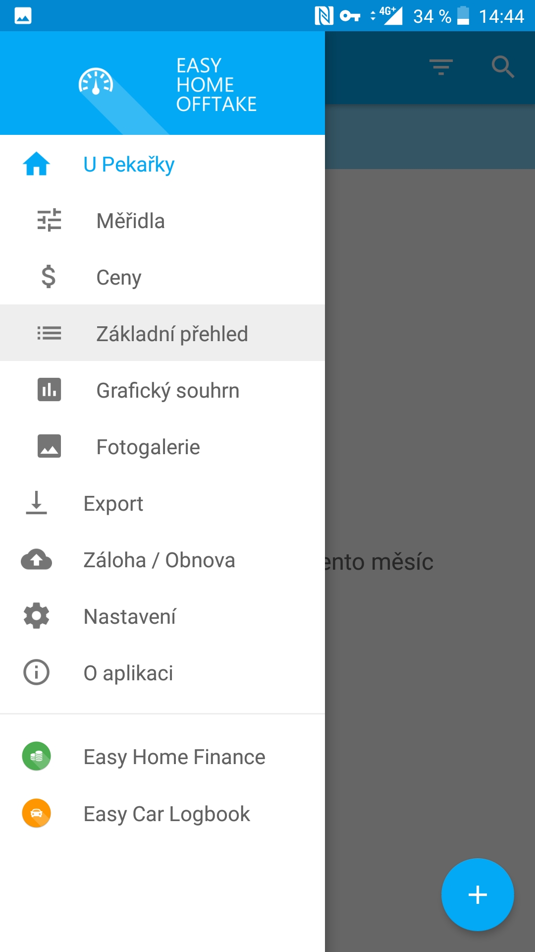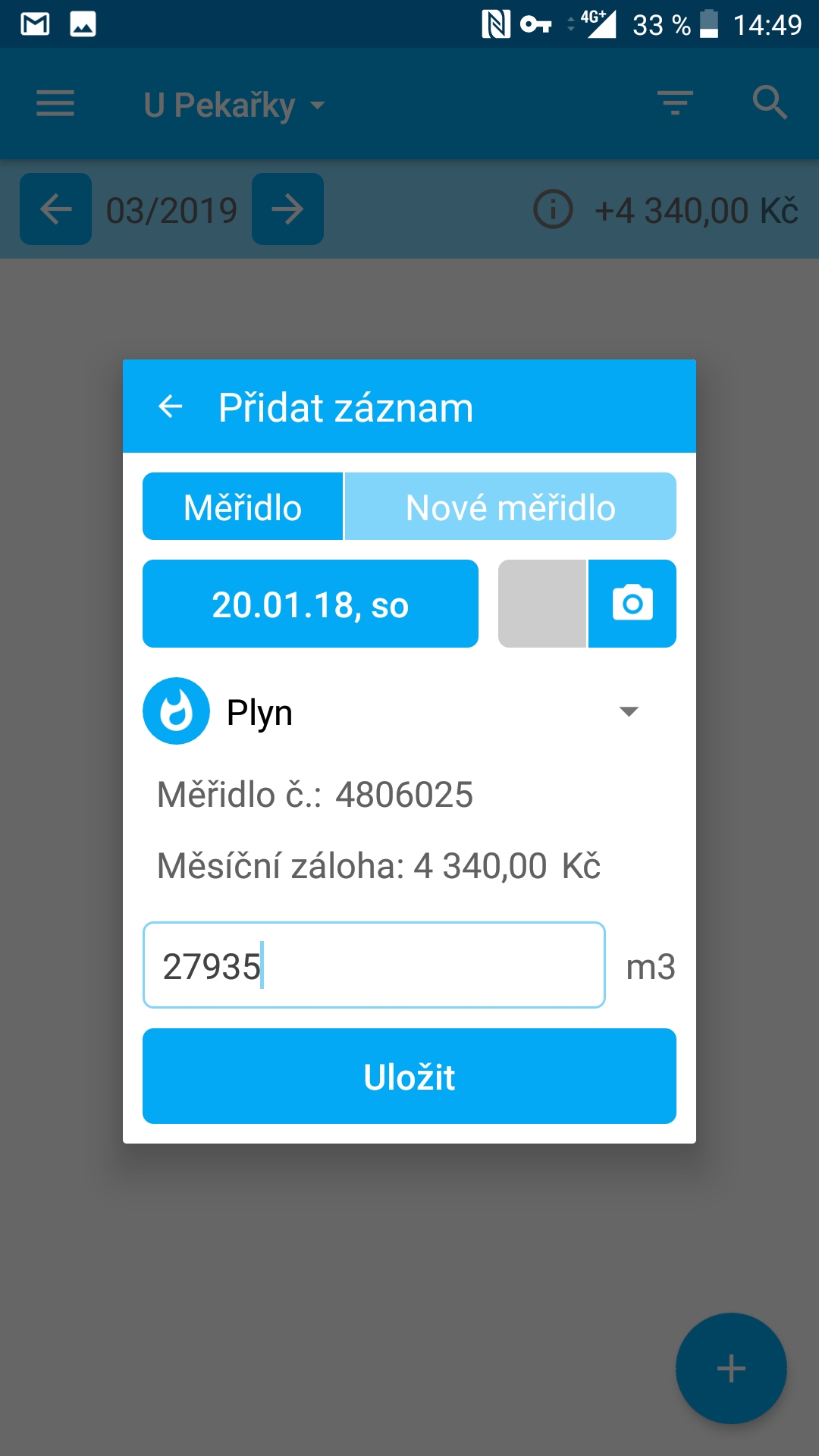 Zadat odečet měřidla můžete na kartě "základní přehled". Jednotlivé odečty zadávejte podle své libosti. V nastavení aplikace si můžete jednoduše nastavit i upozornění, na odečet tak nemusíte myslet.