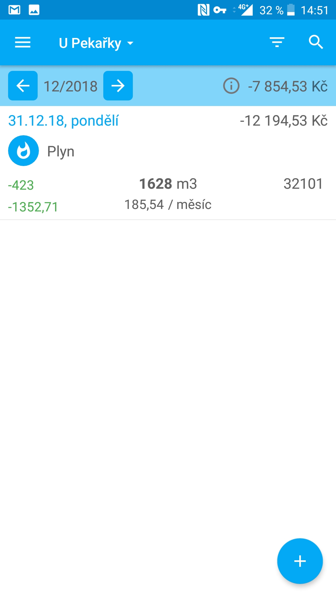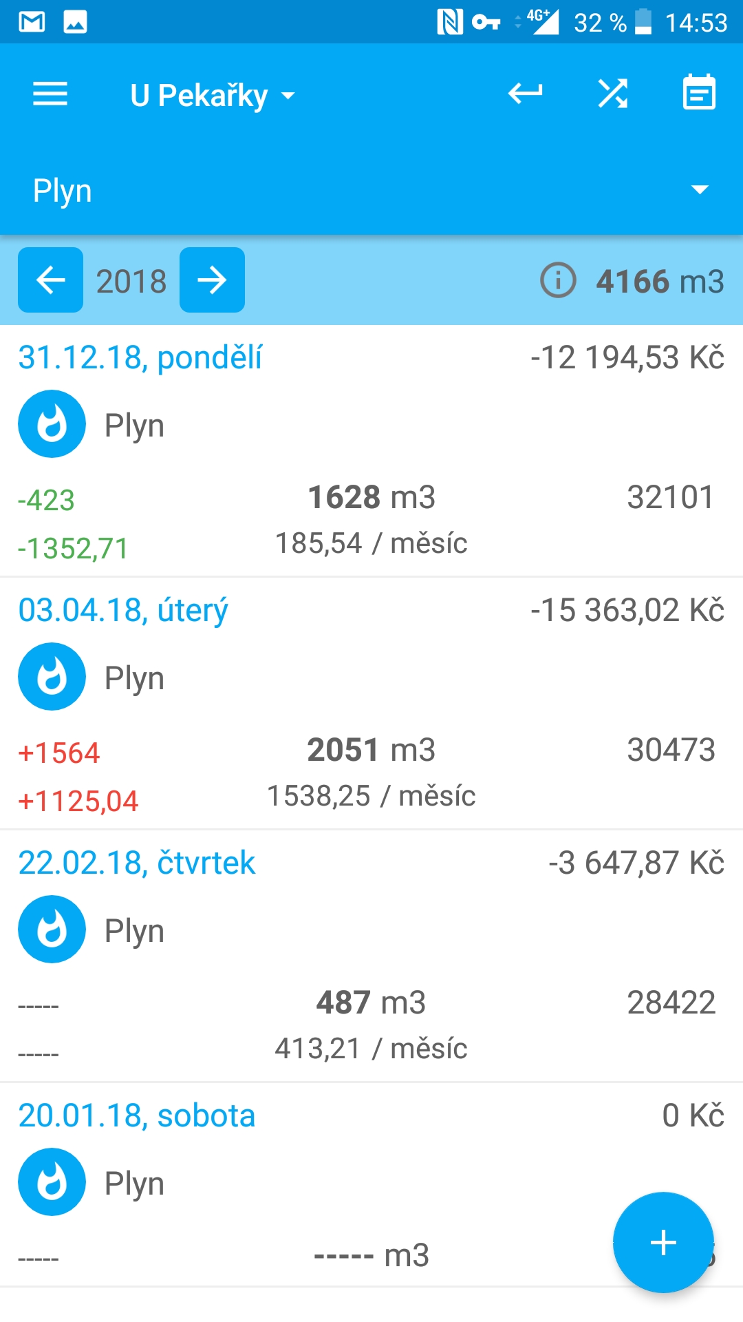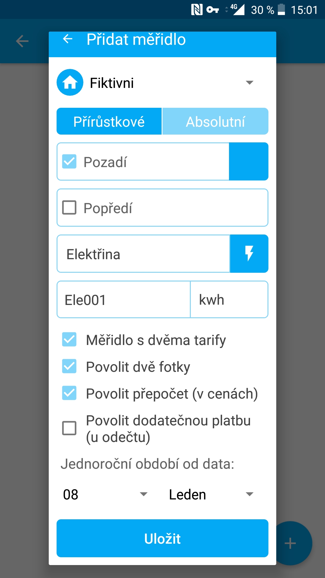 Zadat odečet měřidla můžete na kartě "základní přehled". Jednotlivé odečty zadávejte podle své libosti. V nastavení aplikace si můžete jednoduše nastavit i upozornění, na odečet tak nemusíte myslet.